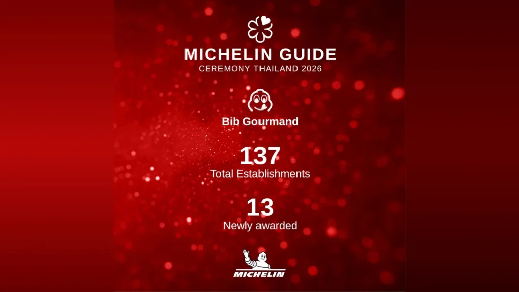 ทั้งนี้ ร้านอาหารซึ่งได้รับรางวัล ‘บิบ กูร์มองด์’ ประจำปี 2569 โดยติดอันดับในคู่มือ ‘มิชลิน ไกด์ ประเทศไทย’ เป็นครั้งแรก มีจำนวนทั้งสิ้น 13 ร้าน ได้แก่