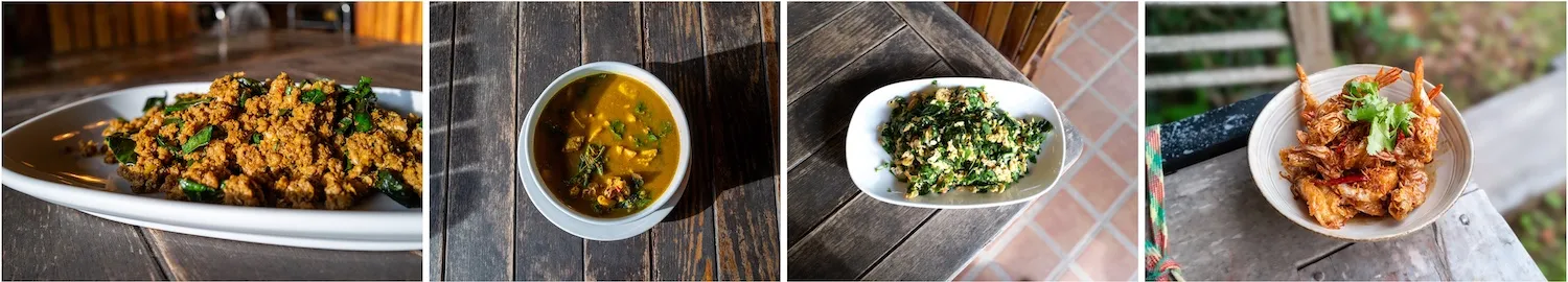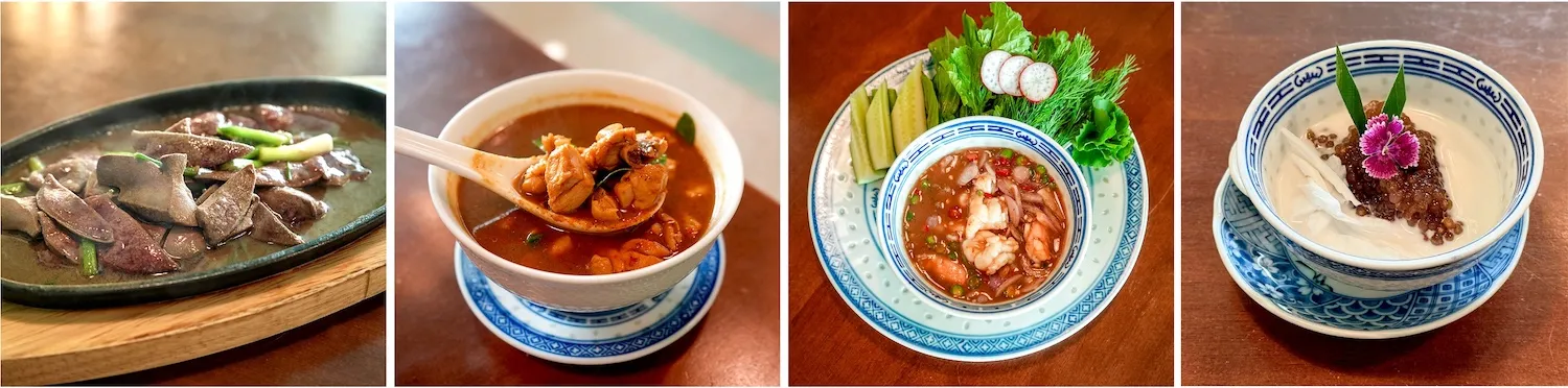 องถิ่นแท้ ตั้งแต่ แกงแค และ ตับหมูทอดน้ำพริกหนุ่ม ไปจนถึง จอผักกาด อาหารทุกจานปรุงตามสั่ งและนำเสนออย่างเรียบง่าย