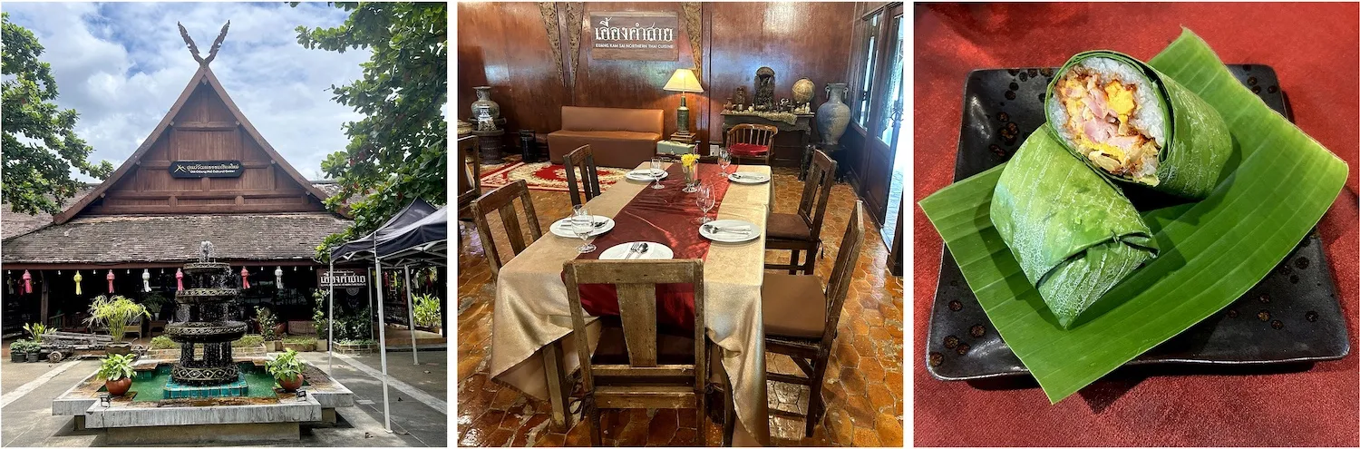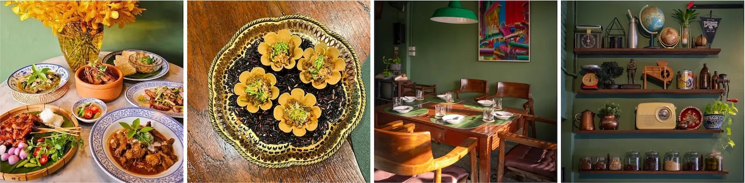บอาหารเหนือดั้งเดิมซึ่งถ่ ายทอดจากรุ่นสู่รุ่นและเลือกใช้ วัตถุดิบจากฟาร์มท้องถิ่นที่ใส่ ใจเรื่องความยั่งยืน เมนูแนะนำ ได้แก่ ข้าวบ่าย (ข้าวเหนียวห่อใบตอง สอดไส้หมู ปลา หรือเนื้อวัว) และ แกงฮังเลเนื้อ ที่ใช้เนื้อส่วนอกของวัวท้องถิ่ นเคี่ยวกับเครื่องแกงสู ตรเฉพาะจนเข้าเนื้อ รสเปรี้ยวหอมมีเอกลักษณ์